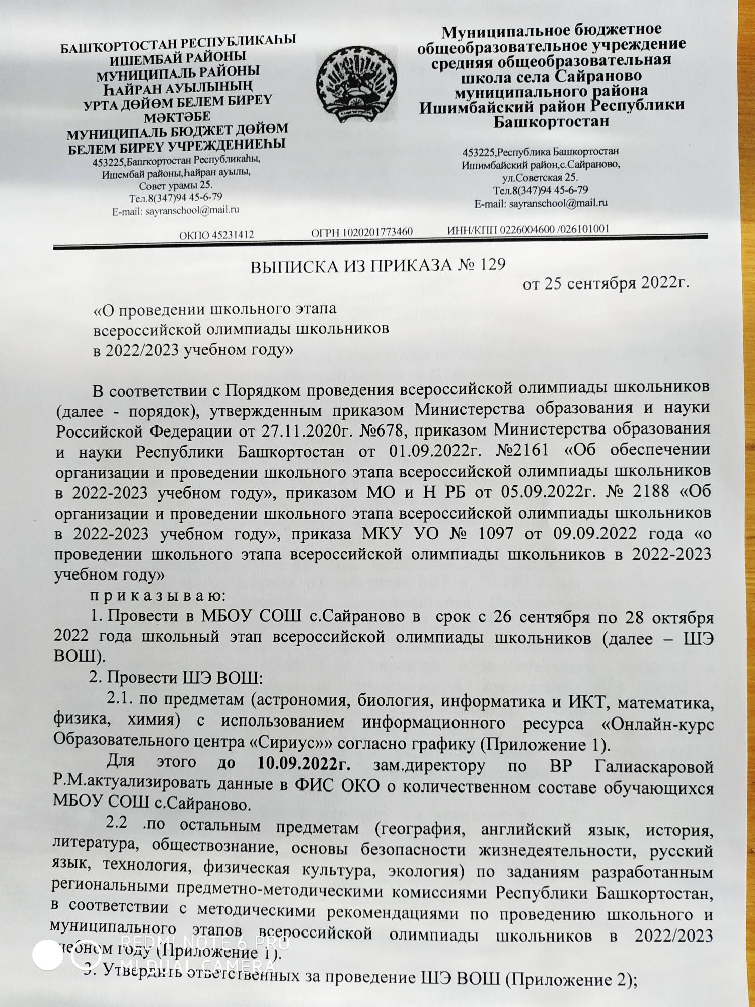 Приказ ВОШ на 2022-2023 уч.год