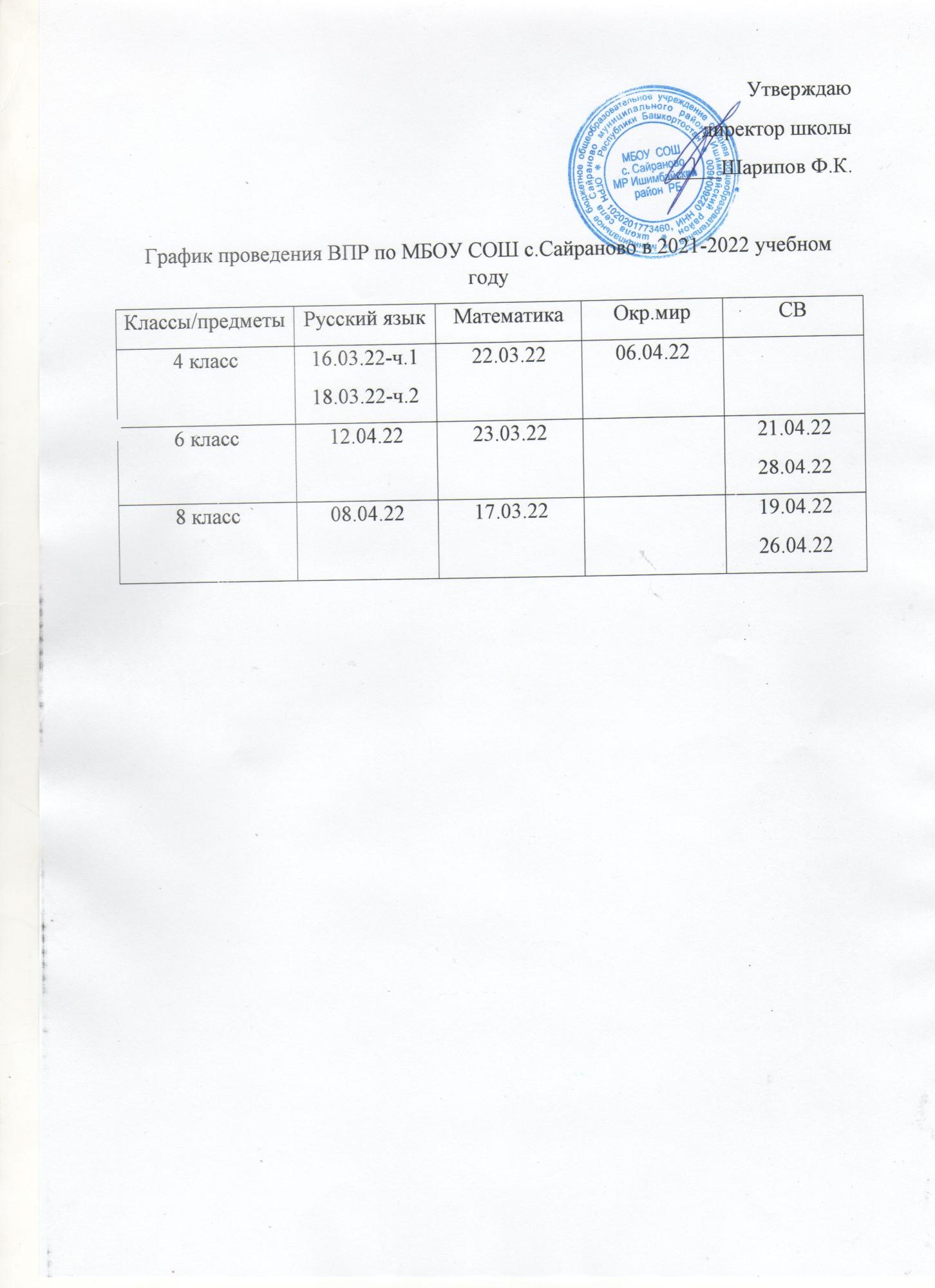 График проведения ВПР